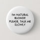 I'M NATURAL BLONDEPLEASE, TALK ME SLOWLY 6 CM ROUND BADGE