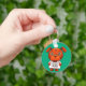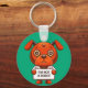 compact and adorable green keychain featuring a sad brown robot dog in a humourous situation. The metallic, futuristic dog is shown sitting with a forlorn expression, holding a tiny sign that says, 'I'm not a robot,' as it struggles with a CAPTCHA prompt from a website