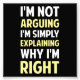 I'm not arguing...I'm simply explaining why I'm right!  Perfect for those occasions when your rational explanation is being misconstrued as argumentative.  Which is probably all the time.