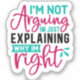 I'm Not Arguing I'm Just Explaining Why I'm Right Funny Sarcastic sticker for cell phone, lap top, water bottle, etc.