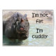 Rhinoceros with an open mouth photo stating "I'm not fat, I'm cuddly"
