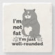 This cartoon image features a cat with a grumpy expression, sitting with its arms crossed. The cat is depicted as overweight, with a large belly and a round body shape. The image is accompanied by a humourous caption that reads: "I'm not fat I'm just well-rounded." The caption playfully acknowledges the cat's size while suggesting that it's simply "well-rounded" rather than overweight. The overall tone of the image is lighthearted and humourous. The contrasting black and white colours of the cat and the caption add to the cartoonish aesthetic. The image is intended to be a lighthearted portrayal of overweight cats and their owners. It's a funny way to acknowledge that some cats are just naturally bigger and rounder than others.