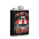 The flask itself is fine. It’s a cheap flask, obviously bought in bulk, however am prepared to overlook that. Given that it is a personalized item, I would have liked to have seen gift boxing instead of the generic packaging. Terrible printing, and/or quality. It’s a cheap, tacky vinyl. It is not cut straight and is also applied in a way that it is overhanging the bottom, causing the glue to catch on items and it will eventually roll and tear, damaging the wrap.