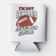 Funny Football insulated can cooler. It has a funny football design that says "I'm Not Retired Just Between Seasons" with a Football drawing between the two sentences. Perfect gift for the football fanatic who is not happy until football season is back!. Whether you are drinking beer or soda, this special high-density cooling sleeve has extra insulation designed to keep canned drinks icy cold for longer periods.