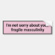 I'm not sorry about your fragile masculinity bumper decal. Sarcastic quotes, Show off your sense of humour with this hilarious ironic bumper sticker, perfect for adding a touch of personality to your vehicle but also any flat object!