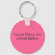 Key chain with pink background and black text saying, "I'm not Weird, I'm Limited Edition".