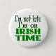 This funny Irish saying button reads I'm not late, I'm on Irish Time, with Celtic knotwork letters. Click Customise It to add your name or custom message.