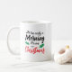 This festive coffee mug features a modern "I'm Only A Morning Person On Christmas" typography design with elements.