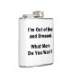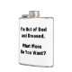 The flask itself is fine. It’s a cheap flask, obviously bought in bulk, however am prepared to overlook that. Given that it is a personalized item, I would have liked to have seen gift boxing instead of the generic packaging. Terrible printing, and/or quality. It’s a cheap, tacky vinyl. It is not cut straight and is also applied in a way that it is overhanging the bottom, causing the glue to catch on items and it will eventually roll and tear, damaging the wrap.