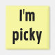 Being picky starts out young! Cute for babies, and maybe true for adults if you're the picky type, this black text T-shirt, mug, and other item simply states "I’m Picky"!