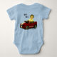 Do you have a bundle of Joy baby boy who loves to be on the go? This is a cute little bodysuit just for him. This baby bodysuit is blue with a printed image of an acrylic painting of a baby boy driving his red and white sports car.