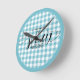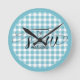 Perfect wall clock for sewers, embroiders, cross-stitchers, quilters and fashion designers! I'm Sew Awesome typography features needle and thread on blue and white gingham background.