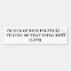 I'M SICK OF RICH POLITICIANS TELLING ME THAT BE... BUMPER STICKER