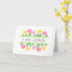 Cute greeting card featuring pink an yellow spring tulips and the text "I am sorry"