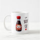 A cute and playful design featuring a smiling soy sauce bottle with the pun "I'm Soy Into You." Perfect for a mug to enjoy your favourite beverages. Ideal for sending a sweet and quirky message to someone special or as a unique gift.