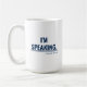 "Mr. Vice-President, I'm speaking," Kamala Harris had to say repeatedly to Mike Pence during the Vice-Presidential Debate on October 7, 2020. If you're a woman, you know you've had to say that phrase more than once during your professional life, and probably in your personal life, too. Design description: In the middle of the design area, the words, "I'm speaking" in dark blue bold sans serif font, over two lines, with a dark blue line under "Speaking." Same design on both side of the mug.