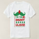 This white t-shirt features a playful Christmas design. A large green moustache with a red nose is at the top, followed by the text "IM THE" and "DADDY CLAUSE" in festive red lettering. A small Santa hat sits above "DADDY," and green Christmas trees and a string of colourful lights complete the design, creating a humourous holiday theme for a father figure.