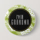 A button which says" I'm The grandma. Designed with a repeating pattern of large palm leaves on an olive green background. Trendy modern and tropical.