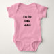 I'm the Little Sister Infant Bodysuit. You have the option of changing text, font style, font colour, font size, and bodysuit colour!