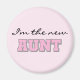 I'm the New Aunt T-shirts, hoodies, mugs, buttons, cards, stickers, tote bags, and other new aunt apparel and gifts with pink and black text.