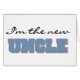 I'm the New Uncle T-shirts, cards, mugs, mousepads, keychains, and other new uncle gear with blue team style text and black text design.