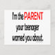 I'M THE PARENT YOUR TEENAGER WARNED YOU ABOUT POSTCARD