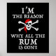 I’m The Reason Why All The Rum Is Gone. Funny quote pirate design is a great Christmas, birthday or gag gift for a pirate lover who loves drinking rum. Perfect for Talk Like A Pirate Day or wear as a pirate costume on Halloween or at a party! If you love to drink rum and rum cocktails, you might be why the rum is gone! This funny saying pirate accessory has vintage text and a skull and crossbones jolly roger graphic.