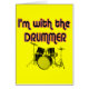 I'M WITH THE DRUMMER. Cute and way popular version of this best selling design theme on a stylish greeting card. Music lovers, musicians, I'm with the Band fans, groupies, and everyone else loves this unique card.