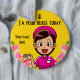 This badge I ordered for my work mate. It’s so cute and perfectly done. I’m very happy with how it’s turn out. Thanks. The color was exactly as the picture on the advertisement. It is good quality print, for the price I paid, I’m very happy with the product. Thanks so much.