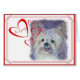 BE MINE VALENTINE Cute white Yorkie Mix watercolor painted with soft multi-pastel colours. Perky Face and devilish smile with a mauve background makes this small dog breed loveable – originally painted by the designer www.fancifulwatercolors.ca – contact me if you want your dog painted