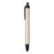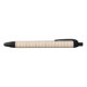 "Image of a ballpoint pen with a woven beige texture wrapping around its body. It has black ends and a pocket clip. The pen is displayed in two views, front and bottom, against a plain white background."