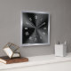 Image of a shiny black metallic stainless steel background with a metallic silver background. Silver Roman numerals face and a silver-tone personalizable name. A metallic look is a digital illusion and not a real metallic foil.