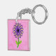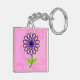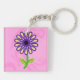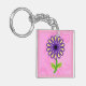 Image of Purple Yellow Green Stem Flower on Pink Key Ring