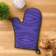 "Image showing a purple oven mitt with a geometric pattern on the front and a textured black surface on the back. The design is bold and modern."