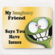 A silly imaginary friend with the words My Imaginary Friend Says You Have Issues. A great way to bring a smile during the day.
