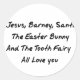 Why should Jesus be the only fantasy friend who loves you when there's also Barney, the tooth fairy, the Easter Bunny, and especially Santa! They all love you equally! Spread THIS word with a t-shirt!