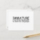 Immature, a word boring people use to describe fun people. Funny, cool and simple design.