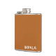 The flask itself is fine. It’s a cheap flask, obviously bought in bulk, however am prepared to overlook that. Given that it is a personalized item, I would have liked to have seen gift boxing instead of the generic packaging. Terrible printing, and/or quality. It’s a cheap, tacky vinyl. It is not cut straight and is also applied in a way that it is overhanging the bottom, causing the glue to catch on items and it will eventually roll and tear, damaging the wrap.