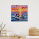 Impasto Dolphins and Ocean Waves Poster