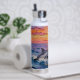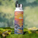 An ai impasto style dolphins swimming with a pink, orange and purple sunset over the ocean . A beautiful coastal water bottle to add a beachy touch to your drinkware.