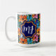 Monogrammed coffee mug. Pretty orange, pink and blue flowers done in an ai impasto oil painting style. A gorgeous floral design to elevate your room! This is pretty for a bedroom, living room, kitchen or really any space you want to add some fun bold colour to!