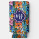 Impasto Style Flowers in a Colourful Monogrammed Seltzer Can Cooler