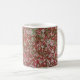 White mug covered with red and pink impatiens flowers from original lithograph, copyright 2001 Ruth Spector