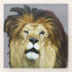 A digital painting depicts some flaws an aging lion may have. His mane is dis-shuffled. He has scars. He roars a lot. There is no background for this image, you may choose any colour you would like.