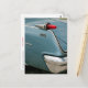 This postcard is a photograph of the tail fin and taillights of a 1962 Imperial Crown.