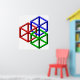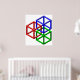 This poster features a vector graphic of optical illusion impossible cubes, in blue, red, and green. The background colour can be customised if desired.