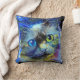 Impressionist Cat Portrait Blue Yellow Black Cushion