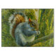 Celebrate the quiet charm of the forest with this richly textured wildlife art print featuring a squirrel perched on a tree branch, mid-snack. With its bushy tail, expressive eyes, and detailed fur, the squirrel is rendered in warm tones of brown, grey, and white, surrounded by golden foliage and textured bark.