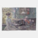 Improvisation (1899) by Childe Hassam is a vintage fine art impressionism portrait painting featuring a a woman playing the piano near an open window and pink flowers in vases.