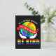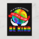 A rainbow colour Earth held in a pair of hands with a quote that says in a world where you can be anything be kind